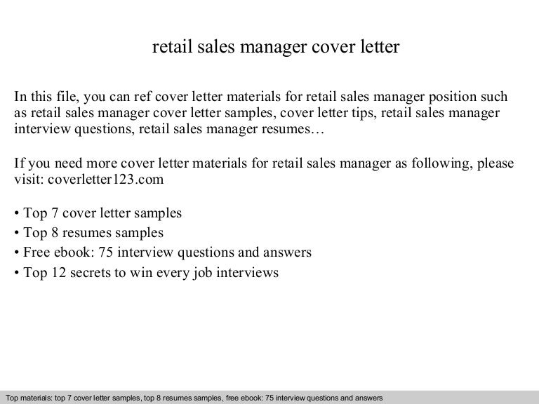 Retail Sales Manager Cover Letter. A resume without a cover letter often lands up in the trash can. I look forward to further discussing with you, during a.