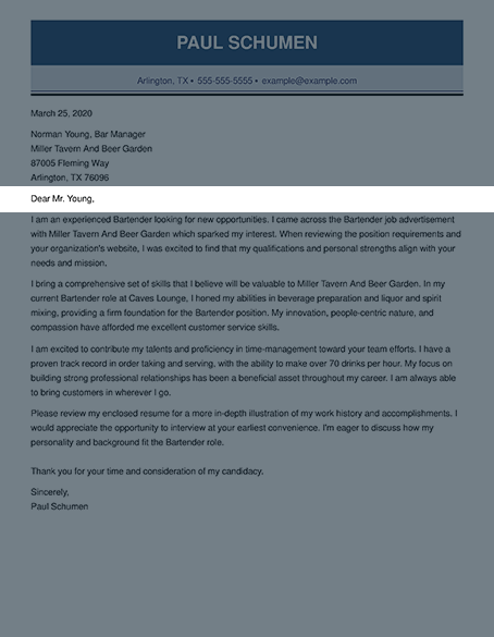 Bartender Cover Letter: Samples and Complete Guidance - CLR