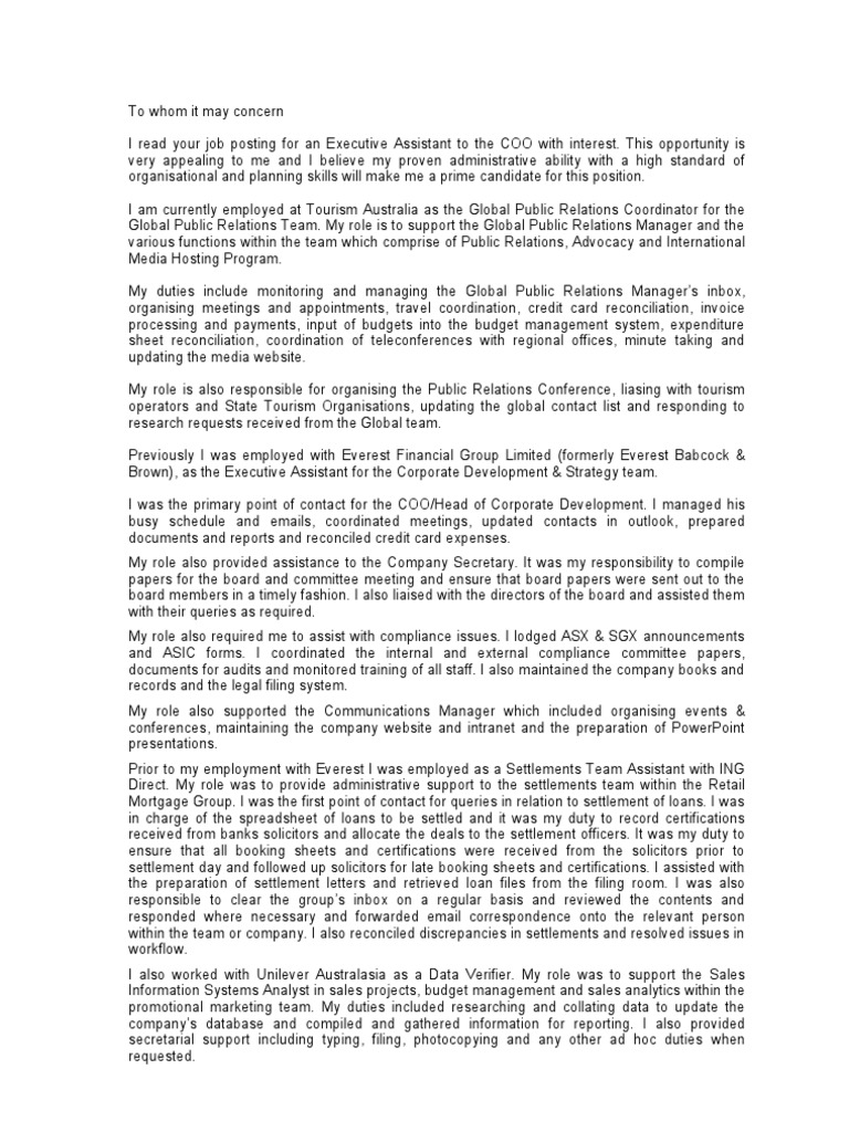 Cover Letter | Secretary | Public Relations