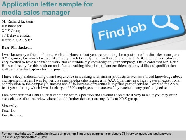 Application Letter Sales Manager. A well written and insightful cover letter provides concrete evidence of your suitability for the sales manager job opportunity. Easy-to-adapt cover letters that get your resume the attention it deserves.