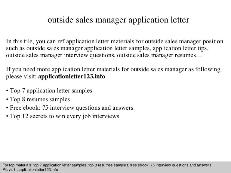 Outside sales manager application letter